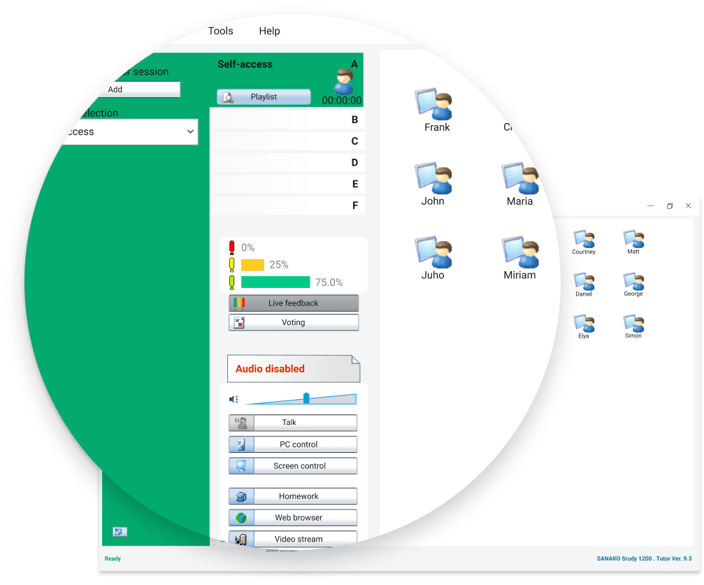 Sanako Study 1200 offers a comprehensive range of features to meet language teacher’s needs. Below is an overview of the key features that make Sanako Study 1200 easier for teachers and students alike.